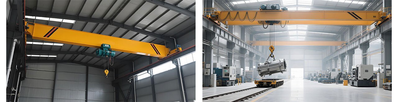 Supported single beam crane: supported on concrete or steel structure columns by end beams, with high stability and strong bearing capacity, suitable for standard factory buildings and conventional industrial environments.