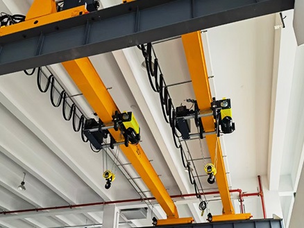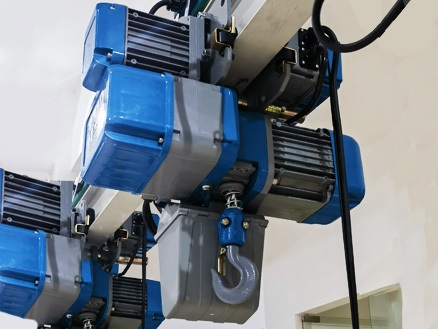 Multiple European-style chain hoists are undergoing strict factory tests