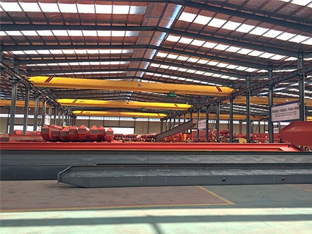 1.Single girder, made by the high quality I steel and high quality U-shapped slot into composition 2.Material Q235B or Q345B ( similar as Fe37 or Fe52). 3.Main girders connected with bolts 4.Arched main beam according to request, the arch degree F should be (1/1000~1.4/1000) S, max. Arch degree be in the scope of middle span S/10. | ![]() |