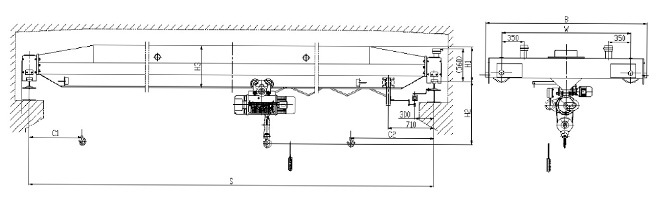 1.Box structure girder welded by U-type groove and steel plate group or only steel plates, with features of light structure, good rigidity, appearance and welding technology. 2.use LD single girder special wheel, light and strong versatility. 3.Buffers settled at the ends of end girder | ![]() |