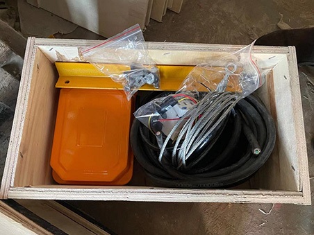 1.Outdoor cranes are equipped with lifting mechanism, 2. electrical control box and rainproof devices 3. Overloading alarm, two grade of top dashing proof protection 4. Crane buffer 5.Anti-collision, sound and light alarm devices 6.Circuit self-check protector 7.Flow phase lack protection | Lifting limit switch