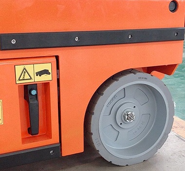 ![]() | Tire Self-propelled scissor lift platform adopts non-trace polyurethane tire, can be used in advanced places, no damage to the ground, skid resistance and wear resistance |